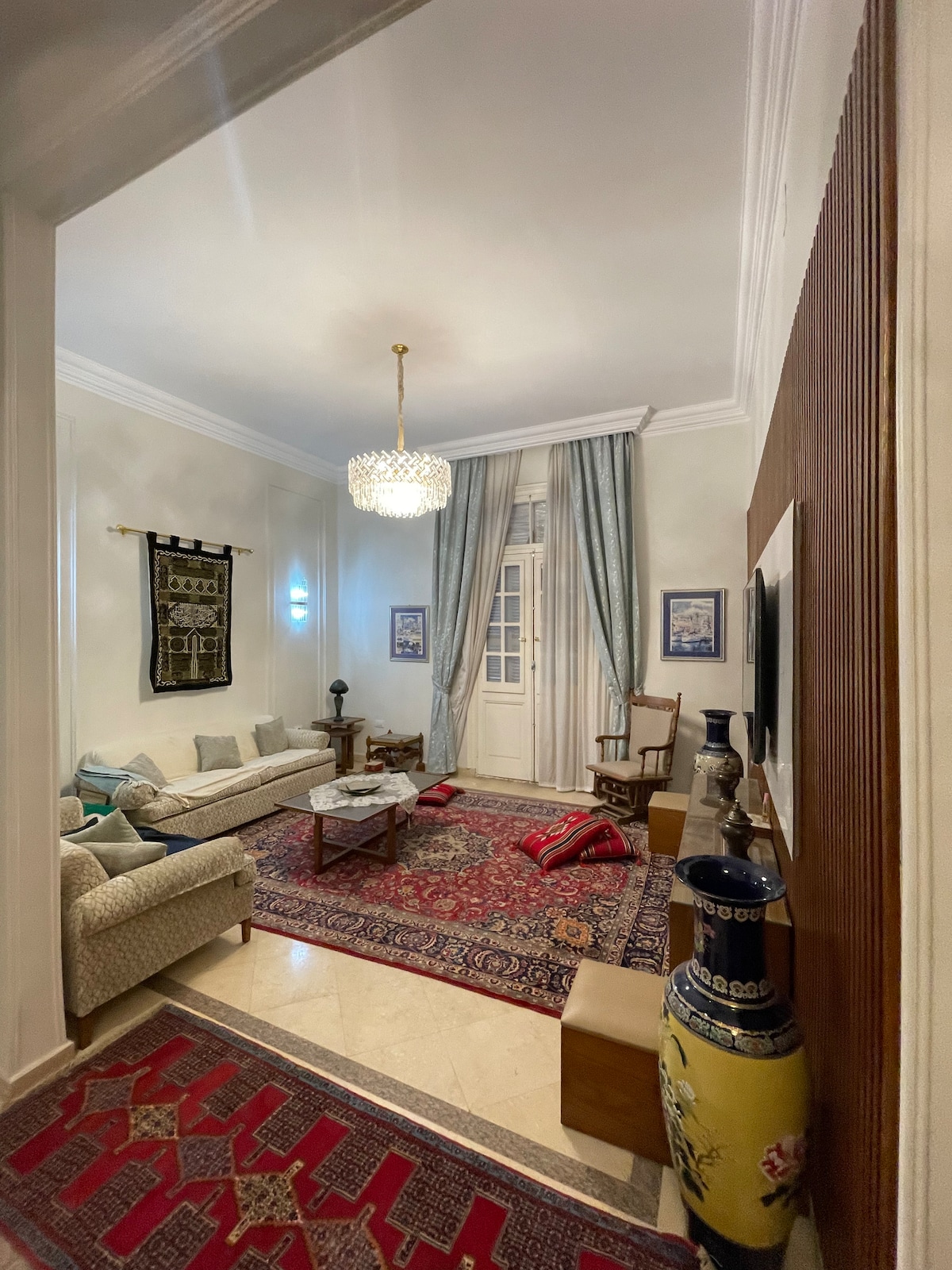 Experience luxury in historic Tahrir Square. Our flat offers 2 suites & 2 additional rooms, accommodating up to 8 guests. Daily cleaning provided. No lift, but assistance with luggage available. Perfect for families and groups. Immerse yourself in the charm of old Cairo while enjoying modern comforts. Explore iconic landmarks and vibrant streets just steps away. noise cancellation windows and earplugs provided for ultimate relaxation. Arabs and Egyptian couples must provide marriage certificate