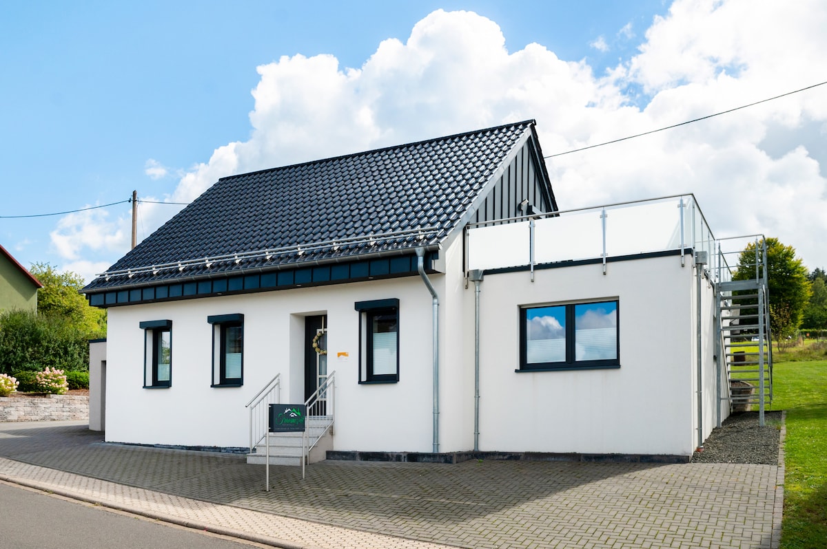 Beautiful apartment in the countryside with outdoor terrace. Very quiet location on the outskirts. We have excluded pets but dogs are allowed and welcome, The apartment is a few meters from the Hunsrück-Hochwald National Park and very close to Erbeskopf and Idar-Oberstein. Restaurants, a bakery, a butcher and supermarkets are quickly accessible from the apartment by car.
