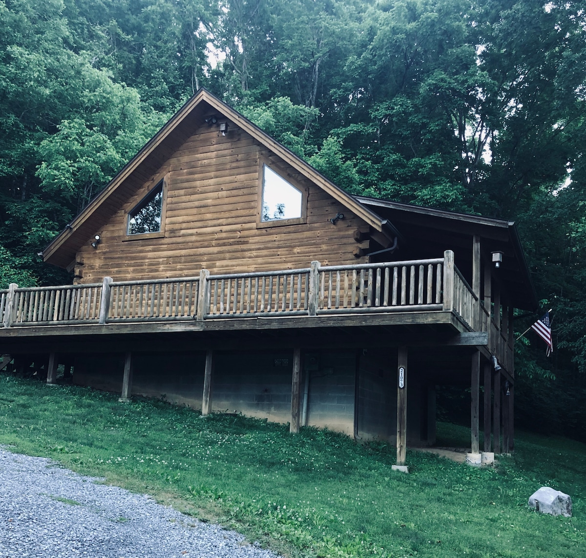 New Wood Cabin located off hwy 58 , 8 min from Abingdon Va , 8 min from Damascus Va . It is one mile to Abingdon Vineyard , and 1.2 miles to the Alvarado Station on the Virginia Creeper Trail , and 10 mins to the Barter theater . Enjoy the Blueridge Mountains where you can hike bike and fish . And unwind to great view from covered porch . There are 7 step to enter with plenty of free parking. We are dog friendly limit 2 bowls and bed provided .