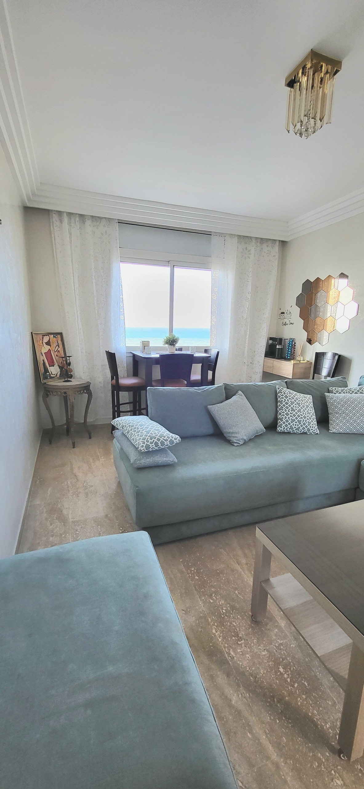 New, luxurious and relaxing 2 BR coastal apartment located in the heart of Rabat for travelers who value comfort & serenity, decorated with taste and attention to details with an astonishing seaview. Its strategic position allows you to easily walk to most city's attractions, restaurants and shops. Fully equipped APT, air conditioner in the main bedroom, High speed WIFI, Netflix, Coffee and literally the BEST Sunset VIEW in Rabat Book now, I have set all the conditions to make you feel at home!