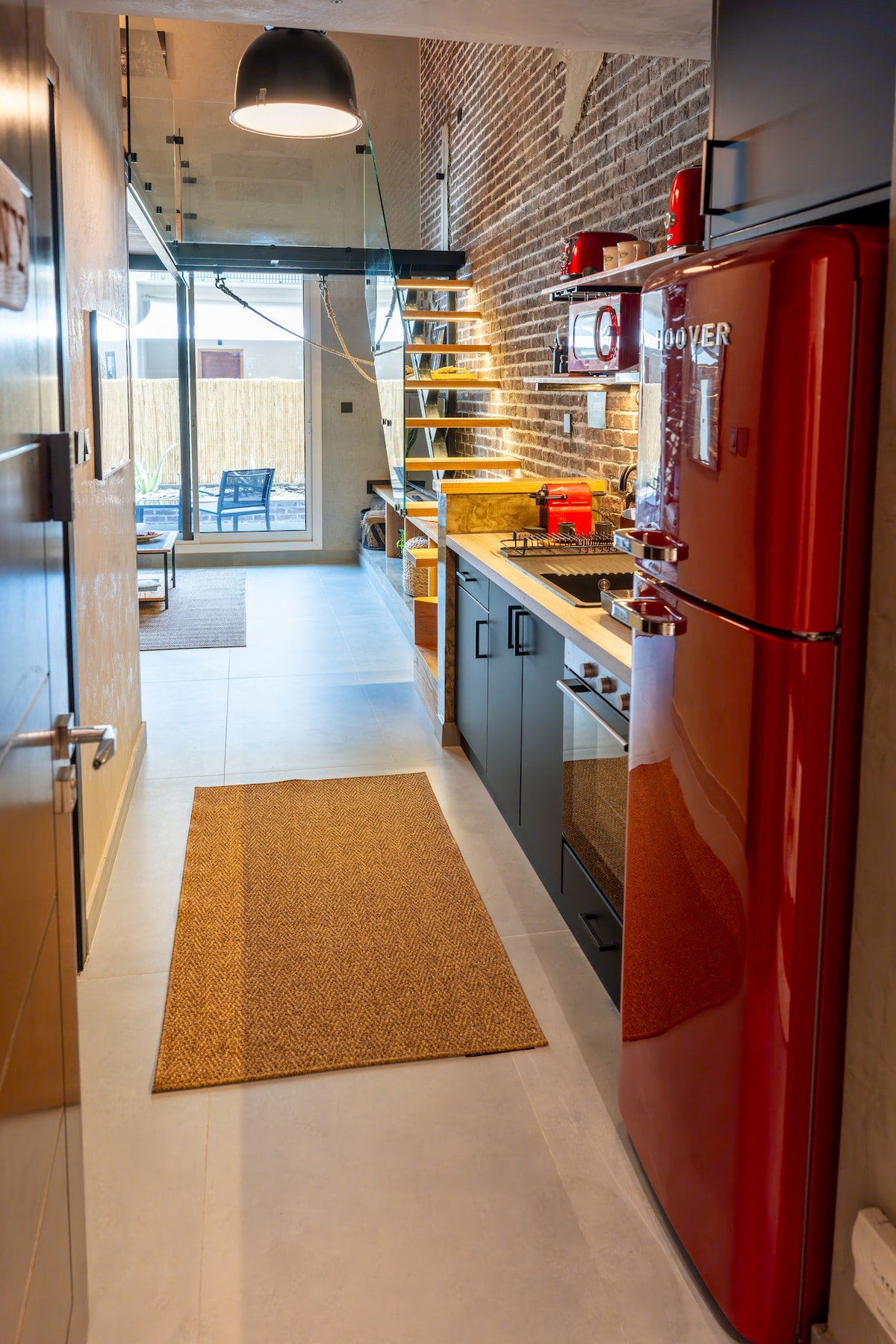 NYC Loft Vibes in the Heart of Dubai! A freshly renovated ground floor mini loft featuring a stylish mezzanine bedroom, an open-plan living area with warm industrial design of wood, metal, and glass. Perfect for tourists, those job-hunting, transitioning between apartments, or simply testing out life in Dubai for a few months. Cozy and welcoming-this loft is more than a stay, it’s your home in the city. Come for the style, stay for the comfort—this loft is the ideal space to experience Dubai!