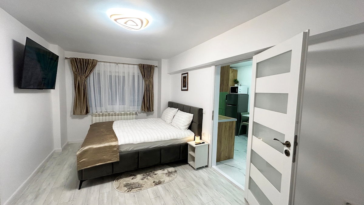 Apartament amenajat special pentru serile romantice împreună. Un loc exclusivist, privat, ideal pentru a petrece seri de neuitat alături de persoana iubită sau .. nu numai. Îți oferim tot confortul de care ai nevoie, multă intimitate și siguranță, astfel încât să te bucuri de relaxare și momente unice. Apartamentul dispune de: -aer condiționat -aparat cafea -wi-fi -smart TV -minibar -balcon La cerere contra cost se poate decora cu flori, lumânări,baloane etc SELF CHECK IN/SELF CHECK OUT