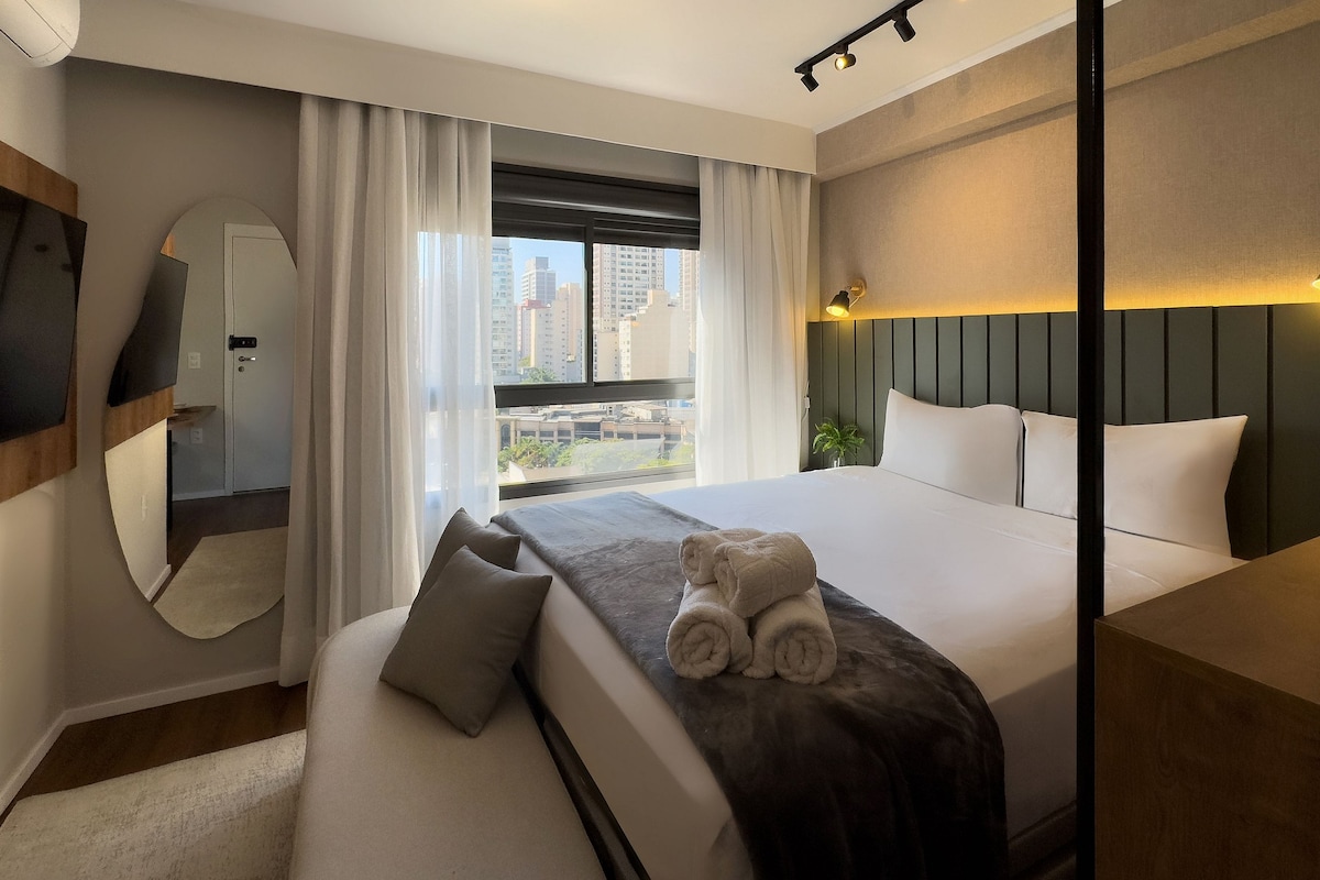 Stay in São Paulo in style! Have you ever thought about staying just 150 meters from Allianz Park, with the Bourbon and West Plaza malls nearby, the Latin America Memorial, Barra Funda Station, Unimed Space and the whole cool vibe of Perdizes at your door? We present a very “stylish” space to call your own: a modern studio with an industrial and Rock N' Roll footprint, compact and intelligent, tailor-made for those who value detailed, modern, practical and functional decor.