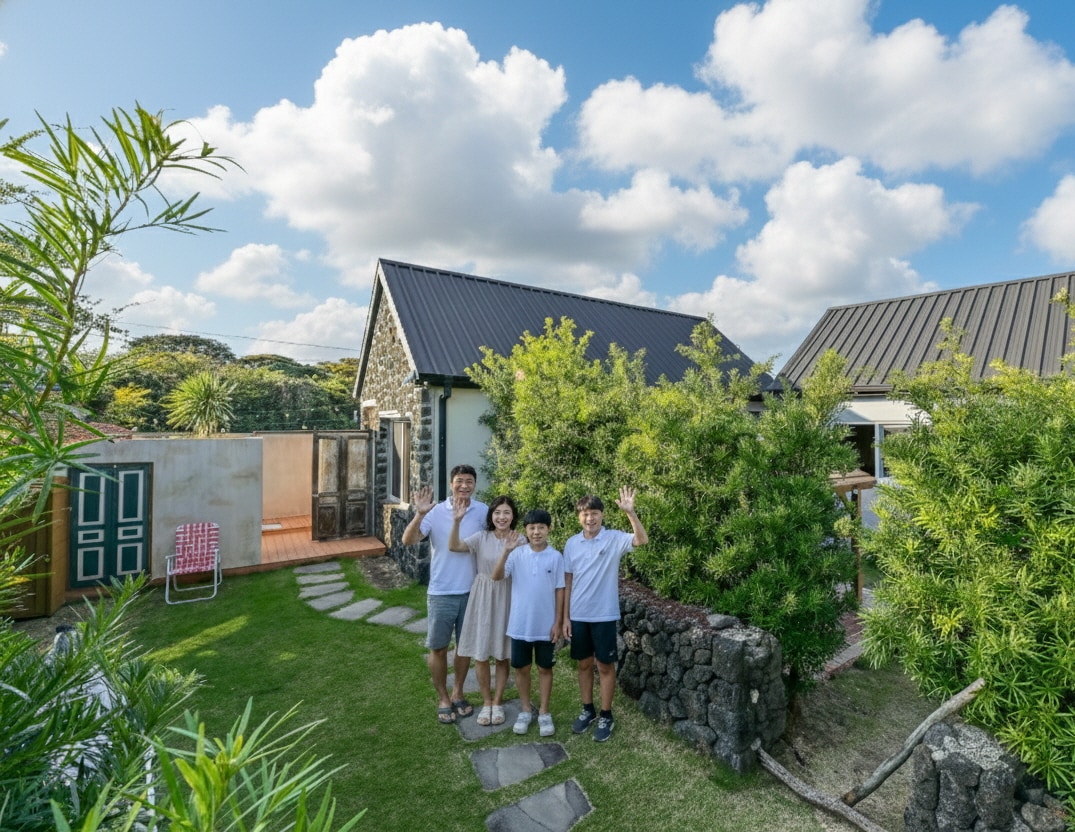 Doeul Eun, Jeju Island, Doje-Rang-In The wind blows in the stone, The light stays in time It is a generous old Jeju house. Along the Olle 8 route Ecological Park, facing the sunrise and sunset at Jinhyeong Lighthouse A place where the light stays against the backdrop of Nonjitmul Beach and Gun Mountain Oreum... Doje Rangin Jeju
