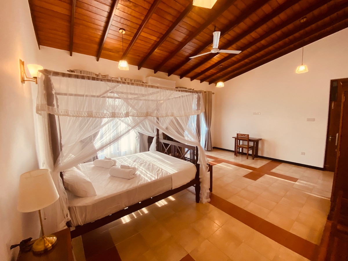 Welcome to your serene escape, close to Colombo. This enchanting villa offers views of lush tropical garden. As you soak in the scenery, keep an eye out for the vibrant array of colourful birds flitting about. Enjoy a soothing bath in the luxurious tub or cook up a delightful meal in the fully equipped kitchen. Take a leisurely stroll through the garden, where you'll discover an assortment of trees, including fragrant cinnamon, pepper & clove, adding to the charm of your holiday retreat.