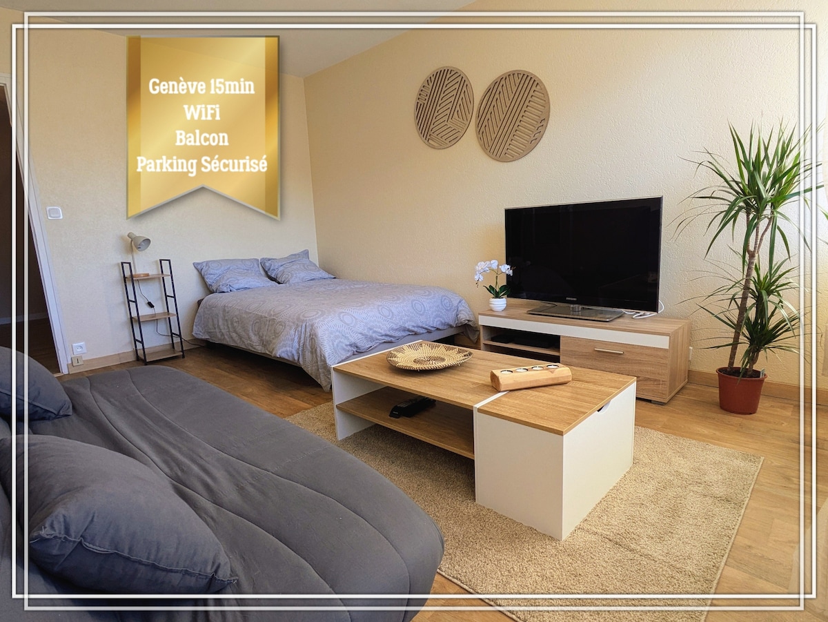 Chambre- Douche Privée & Balcon- 3' Gare Annemasse