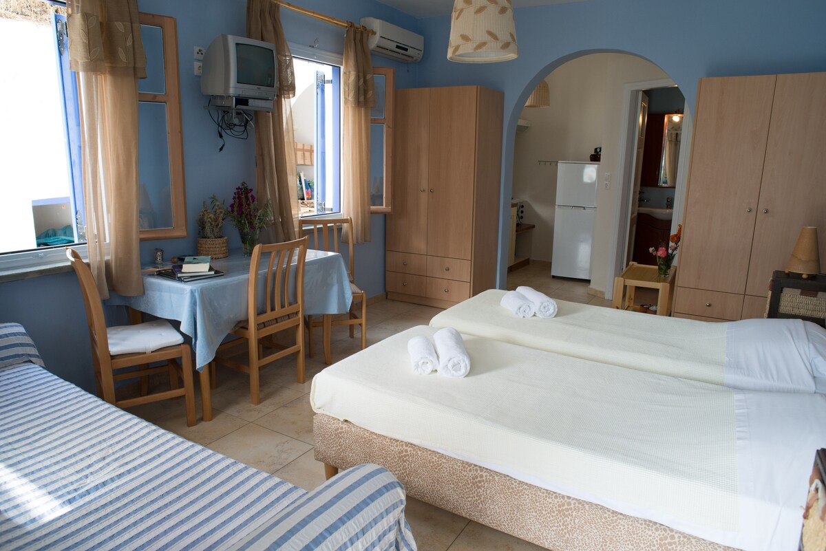 This is a Medieval apartment, in the heart of the Old Town (Kastro), completely renovated, oozing an environment of traditional luxury, an environment that will absorb you. The scenery is breathtaking, with views to the port, the Aegean sea and Paros, sounds are muted, and you can hear the boats arriving in the distance. The apartment is 60m2, with 1 bedroom, a loft with a bed, bathroom, kitchen and a living room that can sleep 2. There is an east and west balcony, wifi, washing machine and a/c.