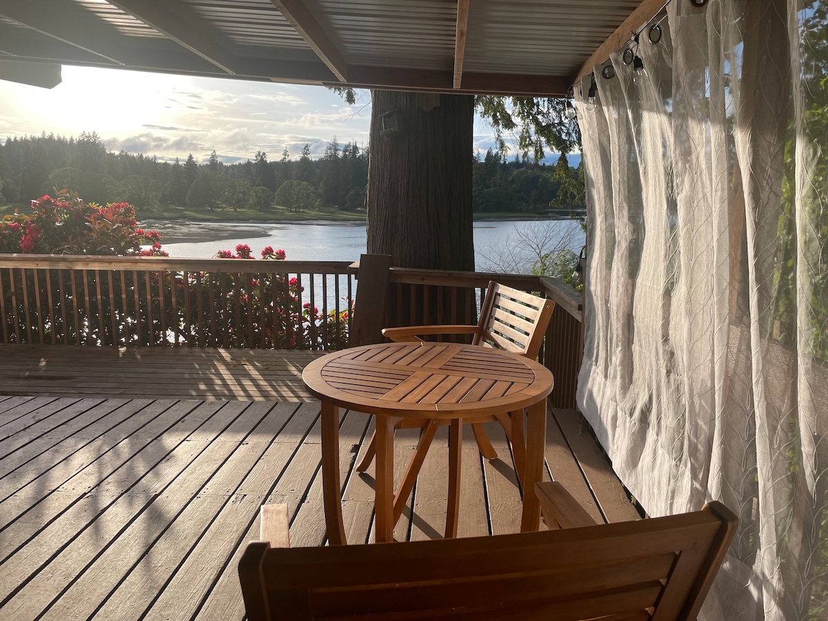 Welcome to my beautiful home on a 5 acre wooded property that's perfect for one person or a couple on Harstine Island. Big kitchen, dining area, queen bed with cozy linens, full sized bathroom, towels, toiletries, writing desks, books, TV, WiFi, games. Relax with a view of the forest, birds and wildlife. Front and back decks with patio sets. Walk in the woods or the two waterfront parks on the island. Basic breakfast, coffee, tea, snacks, condiments and spices are provided.