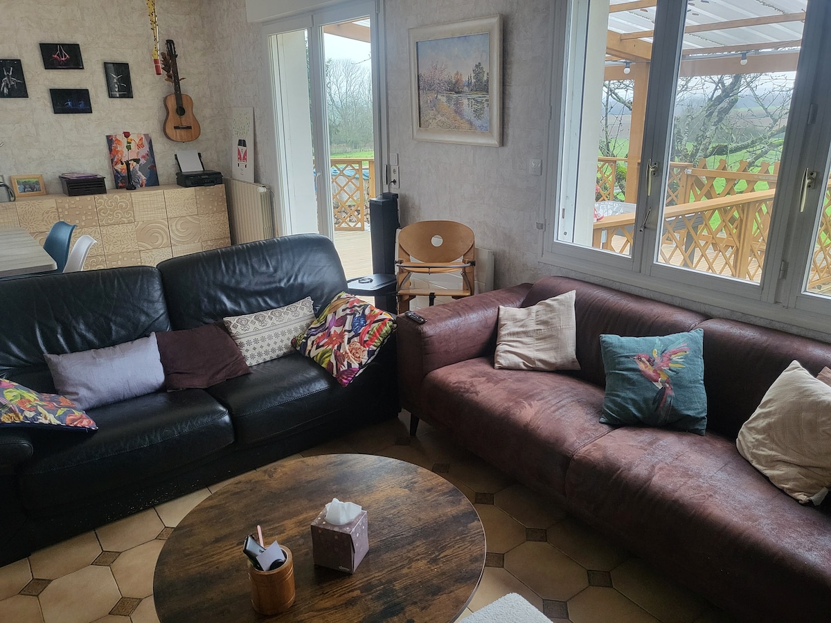 Mansion of 130 m², sunny with enclosed garden, fully equipped, we provide: sheets and towels, shower and cleaning products, coffee, tea, coffee filters Not professional, we rent this cottage to make our beautiful region known We hope that you will feel at home, respecting the place and making the cottage as clean as you found it. The capacity of the cottage is 6 people maximum (children and infants are included in this number)