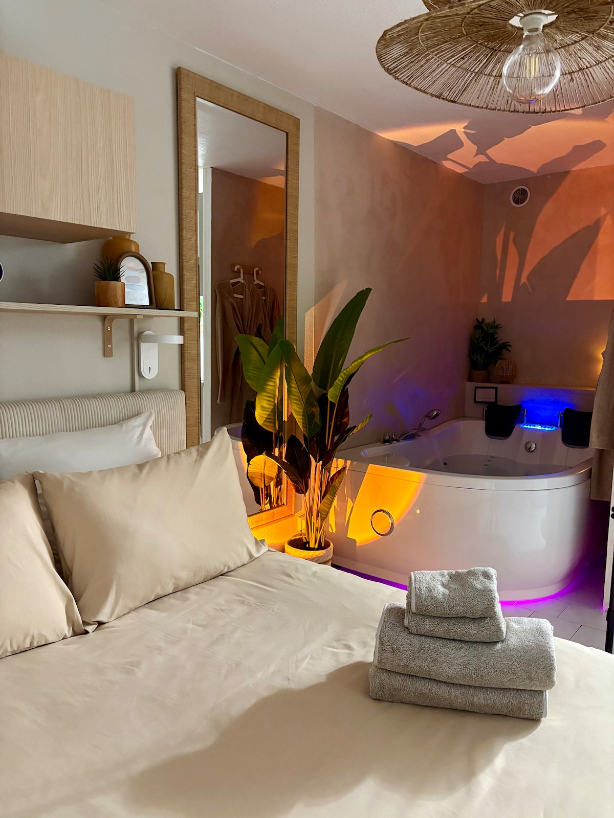 This totally independent and private duplex accommodation with open mezzanine of 70 m² located in the annex of our house, is acclaimed as one of the best bnb on Avignon-Sorgues! You want: enjoy a haven of tranquility, sleep in a king size bed, spread your legs in a beautiful comfy sofa, dinner sitting around a real table: It's here! Price adjusted according to number of people, flexible conditions, friendly welcome, exemplary quality guaranteed!