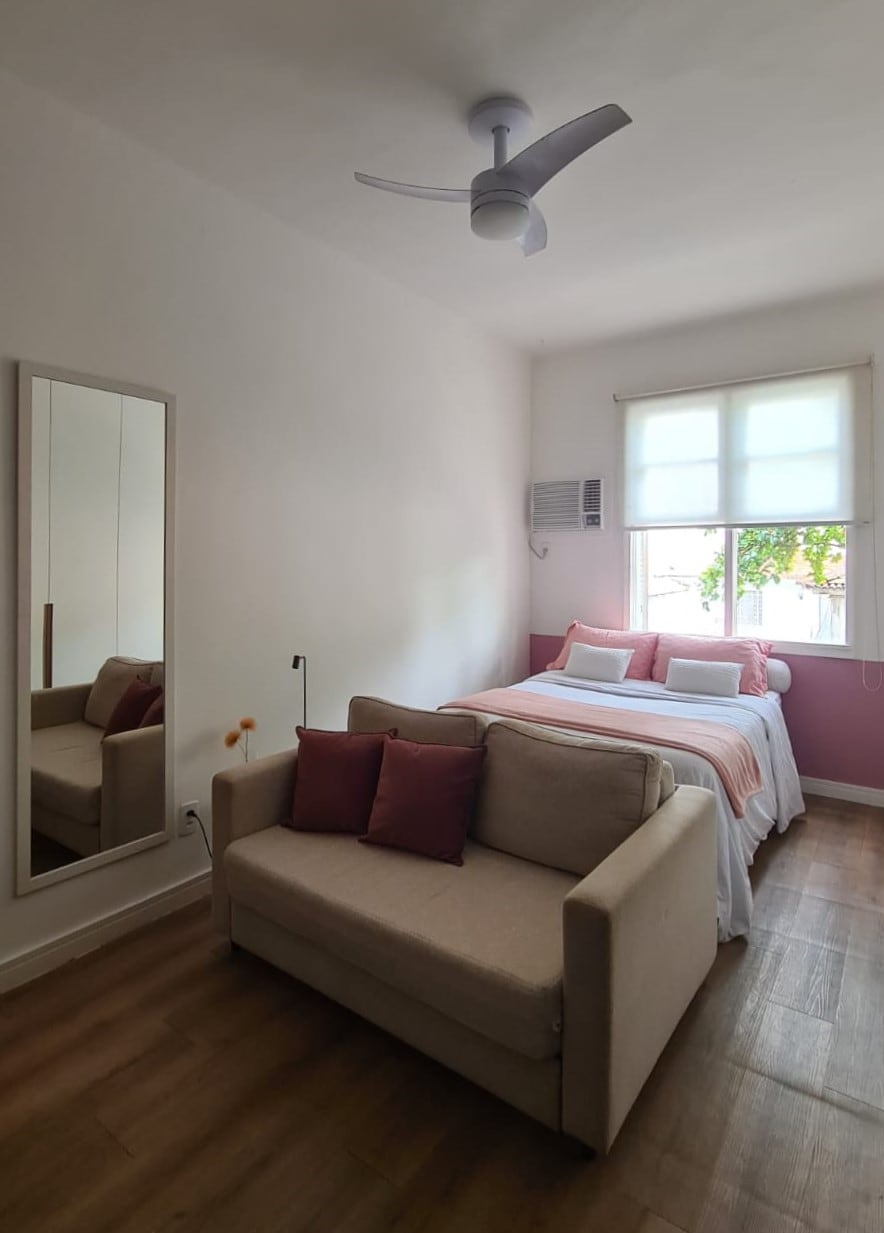 A safe place with a 24-hour concierge to welcome you! 30 sq. meters with kitchen, bedroom with king size bed, living room with double size sofa bed and bathroom REFURBISHED SEPTEMBER 24 The apartment was all designed to welcome you and make you feel at home in Rio de Janeiro. Cozy and welcoming space, it is super well equipped and is just steps from tourist spots such as Ipanema Beach, Leblon Beach, Lagoa Rodrigo de Freitas and Arpoador. Located between bus stop 10 (Ipanema) and bus stop 11 (Leblon)