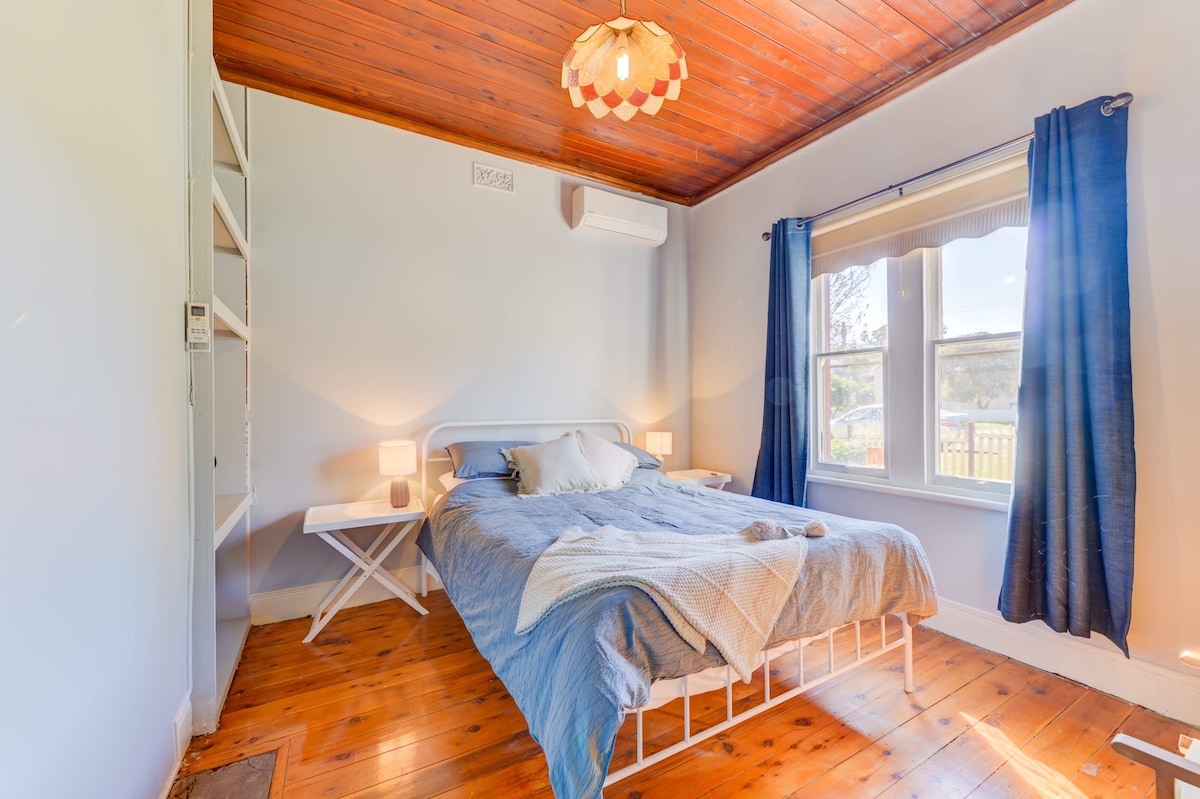 Enjoy a relaxing stay in an original woolshed that is over 100 years old! Located on our 100 acre property, the woolshed is distanced from the main residence so you can enjoy the privacy and peace you find on the land. Property features include: Full Kitchen, Large living/dining area, Tv/wifi, Ceiling Fans in living area, newly built sleeping quarter and bathroom w/queen bed & reverse cycle. Uber/Taxi available, 16KMS to CBD. *Fire place is not functional. Adults only, strictly no animals.