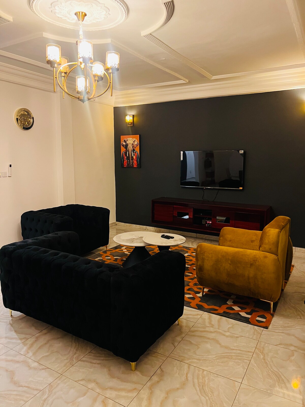 Envie de couleur et de luminosité ? cosy Home vous offre ce magnifique studio spacieux, climatisé et confortable pour vos courts,moyens et longs séjours a Yaoundé Tropicana