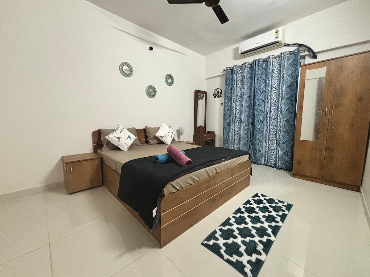 Welcome to our charming 1 BHK cozy and peaceful flat perfect for a comfortable stay in the heart of the city! This delightful retreat is fully equipped to meet all your needs, whether you're here for a short getaway or a longer stay Note: For 29th July quoted rate is just for 2 guests, Note: The clubhouse remains closed every Tuesday as part of its weekly schedule.