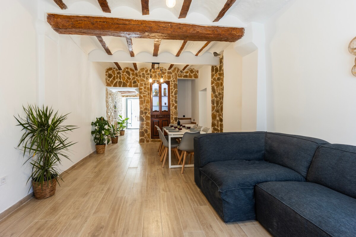 Discover a haven of tranquility and natural beauty in the mountains of Alzira. This rehabilitated design home combines rustic charm with a modern and minimalist style, offering a cozy, functional and inspiring space. The exterior is a paradise: private pool surrounded by garden with olive trees, fruit trees, pine trees and aromatic plants, porch for outdoor dining, barbecue area and a solarium ideal for relaxing enjoying the stunning views of the Casella Valley.