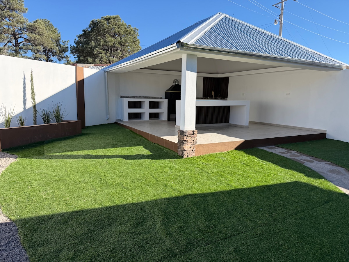 Excellent location in a quiet area, with an incredible view🌲🪵 a few meters from the wooded area and at the same time close to the main street, easy to access and with private parking for up to 5 vehicles, 5 minutes from downtown Creel, with shops and restaurants nearby!! Pets 🐶welcome🐶 (except kittens🐱) Give us the opportunity to provide you with comfort, safety and contact with nature in one place 😌😉