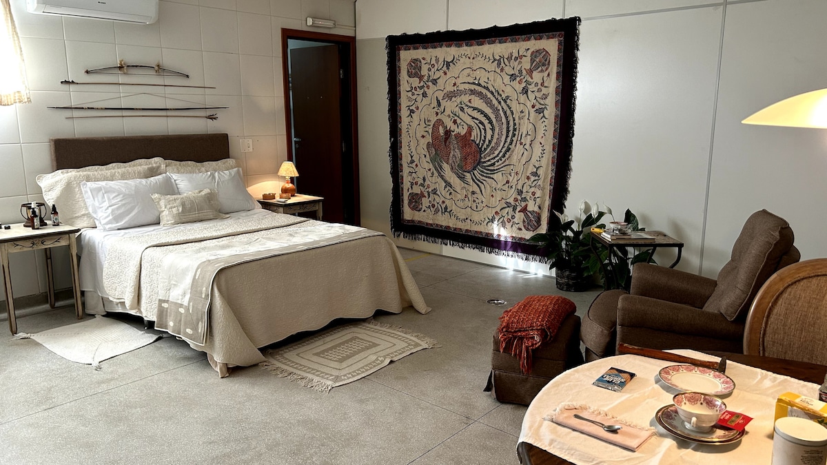 Complete studio with Wi-Fi, smart TV, AC, refrigerator, microwave, induction stove, Alexa, kitchen utensils, coffee maker, water filter, hairdryer, iron and everything else for your comfort. You can choose between two twin beds or a queen-size bed. Enjoy common areas such as a swimming pool, elevator, laundry, parking, 24-hour concierge, study or meeting room, and gourmet space. Excellent location, close to São Francisco hospital, Unaerp college.