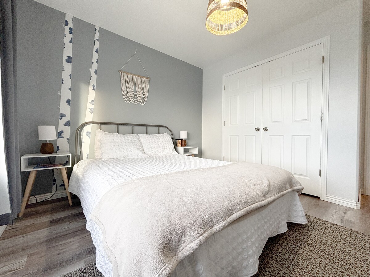 Enjoy our all new furnished suite with a private entrance and off street parking in a beautiful mature neighborhood. Our cozy comfortable great room includes a 50 in TV with 285 channels and Roku. Enjoy the remote controlled electric fireplace with awesome colors and adjustable thermostat. Cook at home with a kitchen ready for any meal. Charge your electronics with a USB and USB-c charging Outlet. If your looking for more privacy head to the quiet master bedroom and turn the second TV.