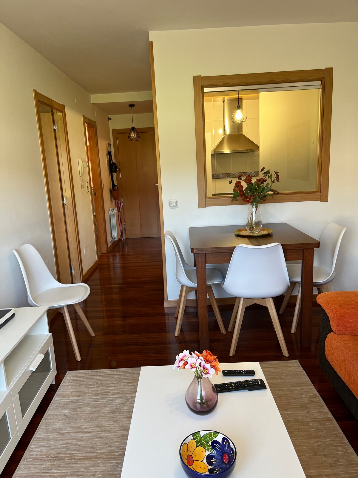 Cozy and quiet apartment with the possibility of accommodating up to 4 people. Enjoy the proximity to Santiago and the tranquility of the countryside. Close to hiking trails. Fully equipped kitchen. It has a washing machine and a garage space. There are restaurants, pharmacies, bars, supermarkets, and playgrounds a few meters away. Bus stop to downtown Santiago in front of the gate. It is a charming village, with a lot of green area, 20 minutes from the beaches of Noia and 30 minutes from the Costa da Morte.