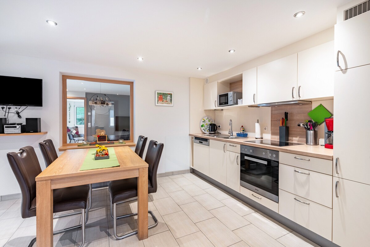 Our quiet apartment is beautifully situated in the countryside. With a large balcony, a nice spacious daylight bathroom, very quiet bedrooms and a large kitchen-living room. Perfect for relaxing or visiting various places that are good for you. Herb garden à la Hildegard Bingen or wonderful cities. In the immediate vicinity you will find ideal recreational opportunities: nature at your doorstep or Europa-Park in Rust. Of course with Konus - map to the two-valley land. Exciting!!