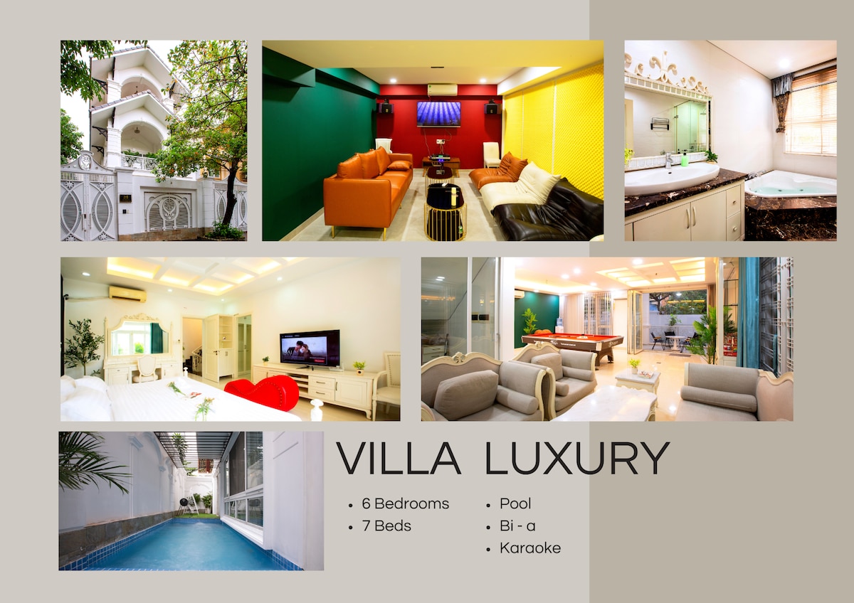 Biệt thự sang trọng tại Quận 2 – Trải nghiệm nghỉ dưỡng đẳng cấp Tọa lạc tại trung tâm Quận 2, TP.HCM, biệt thự 6 phòng ngủ, 7 giường và 5 phòng tắm là lựa chọn hoàn hảo cho gia đình hoặc nhóm bạn. Villa có hồ bơi có chế độ sục massage, sân vườn xanh mát, phòng karaoke, bàn bi-a, khu BBQ ngoài trời. Thiết kế hiện đại, nội thất cao cấp, mang đến không gian nghỉ dưỡng riêng tư, tiện nghi chuẩn resort.