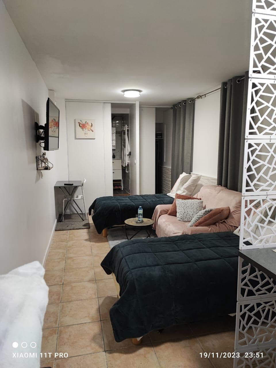 Charming Studio near Melun in a Secure and Peaceful Residence Welcome to our charming studio nestled in the heart of a secure and peaceful residence surrounded by greenery. This modern and comfortable studio is the perfect place for a relaxing getaway or for business trips. With its elegant furniture and natural light, it offers a warm and welcoming setting.