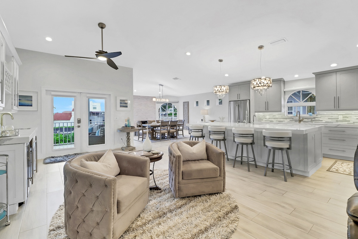 This stunning Bonita home is steps from the beach. It combines modern luxury with artistic flair. The home features a striking wave stained-glass window and cozy sitting nook which provides an ideal spot to watch mesmerizing sunsets. The chef’s kitchen flows into the great room and dining area, where a large picture window frames serene views of palms. The home has a generous outdoor deck. It features three beautiful bedrooms and two full bathrooms, each designed luxuriously.