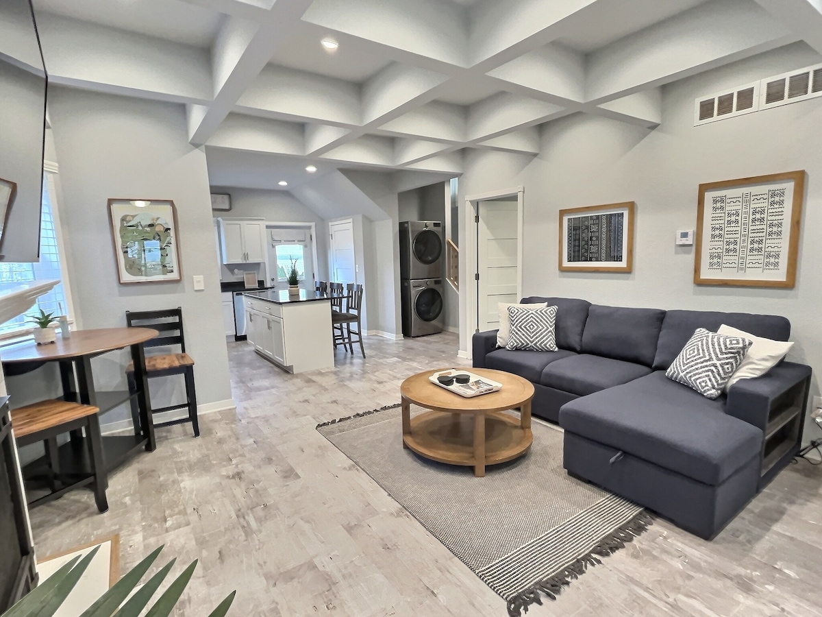 Welcome to your stylish Milwaukee retreat! This large corner studio loft blends historic Cream City charm with modern comfort. Soaring 15-ft ceilings, exposed brick, and oversized windows create a bright, open space. Enjoy a spacious king bed, fully stocked kitchen, and free off-street parking — rare in this neighborhood. Walk to the Third Ward, Walker’s Point, and Milwaukee’s best restaurants, breweries, shops, and the vibrant riverfront. Perfect for both work and play.