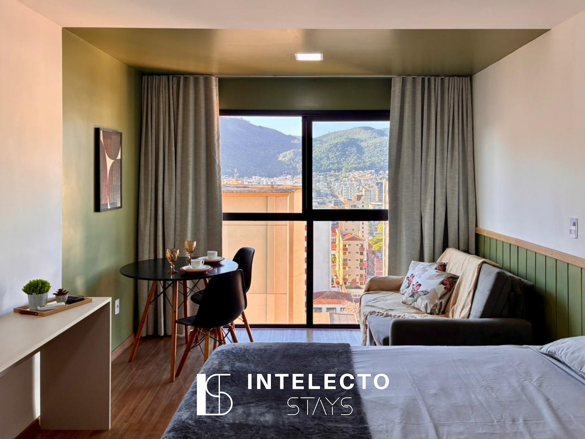 Apê excepcional para relaxar e curtir tudo que há de melhor em Poços. Seja algumas noites ou por meses, nosso studio é o ideal. Prédio na área central da cidade, perto de tudo, com portaria 24h, elevador, lavanderia, coworking, rooftop com piscina, jacuzzi, academia e área gourmet; todo mobiliado e equipado, muito funcional e confortável. Self check-in fácil, internet ótima, ar condicionado, Smart TV, além de vaga coberta de garagem. Fornecemos toalha, roupa de cama e coberta