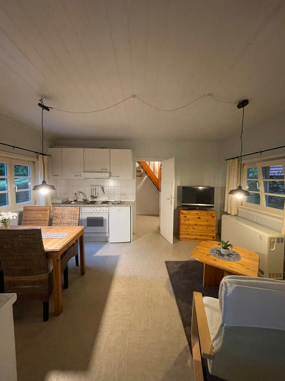 The town center with shops is within walking distance in max. 10 minutes. Studio (approx. 30 m²) with private entrance, double bed (1.40 m), single bed (0.90 m) and private bathroom. The dining area with fridge, kettle, toaster, dishes and cutlery. Please smoke in an extra "smoking lounge." In the neighborhood there is a company that can provide "acoustic impressions" during the week between 7 am and 4:30 pm.