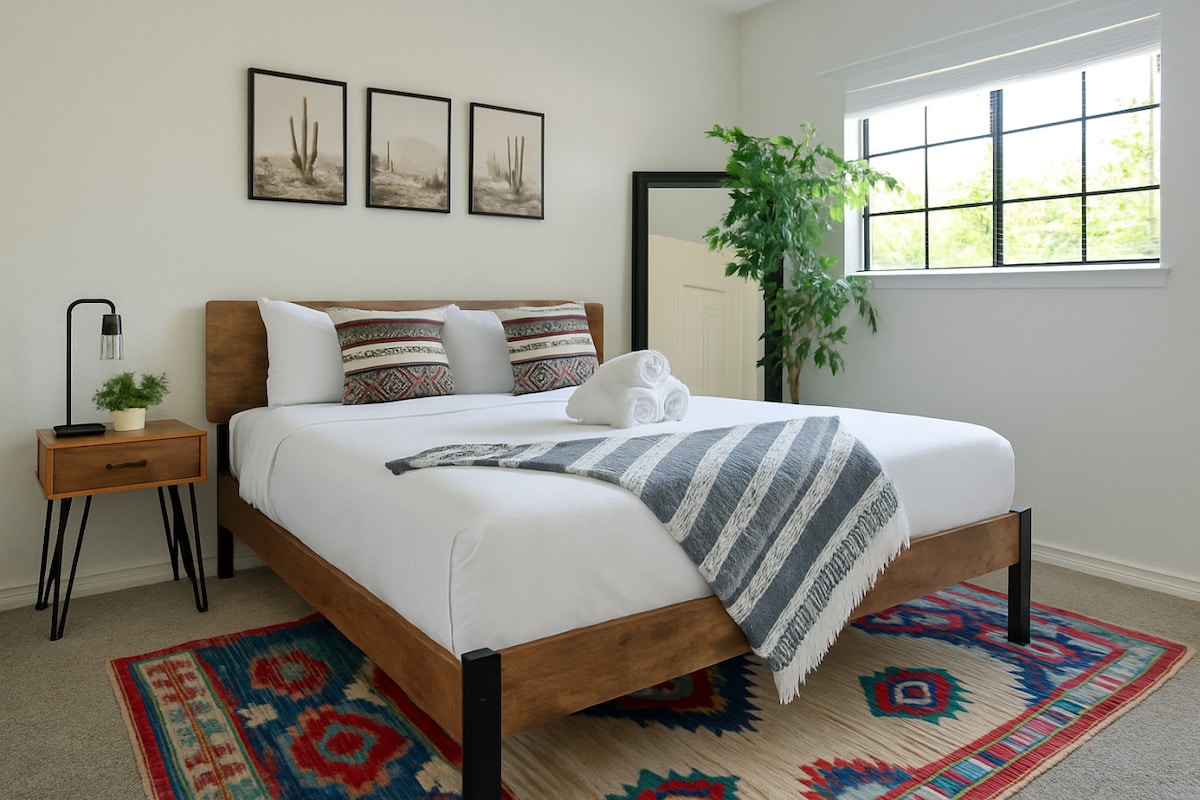 Step into The Space Cowboy, a dreamy retreat where cosmic charm meets modern luxury. Warm lighting, creative details, and a peaceful atmosphere make this home the perfect place to unwind and feel inspired. Relax, reconnect, stargaze, or simply enjoy the calming vibe that surrounds you. Designed for comfort and imagination, this unique space invites you to create unforgettable moments from the second you arrive.
