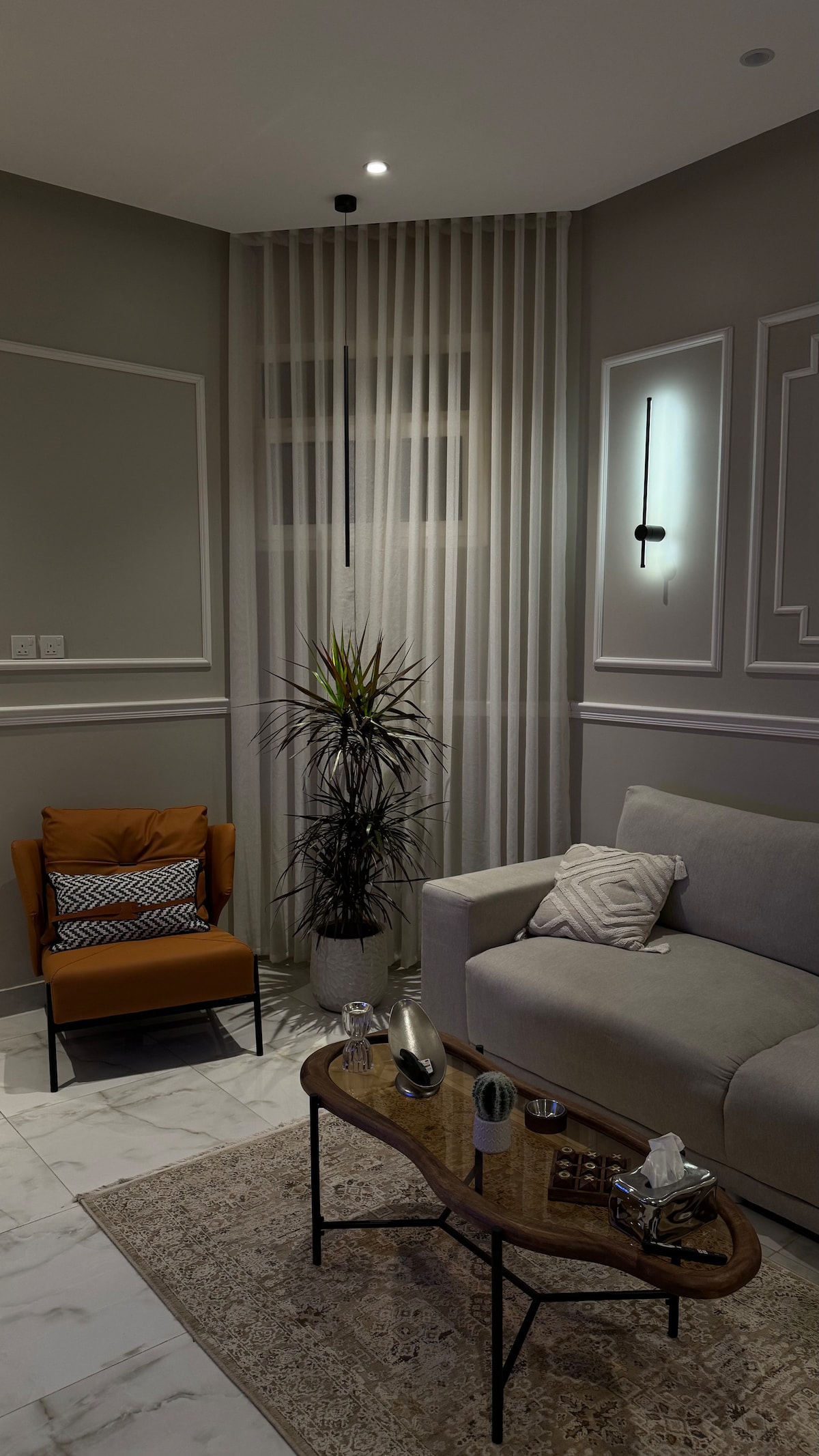 A high-end apartment in a prime location in the Al-Fayziyah neighborhood in Qassim, just 20 minutes from the airport and 5 minutes from Al-Nakheel Mall, and close to all services, restaurants and shops. The apartment has a modern design and elegant decoration, including a private bedroom and a spacious living room with comfortable furniture and a large-screen TV. Fast Wi-Fi, private parking, and a luxurious 5-star hotel entrance are available. It also includes a small kitchen for making coffee and snacks, with a comfortable seating and warm lighting. The perfect choice for short or long stays, combining comfort, privacy, and the perfect location.