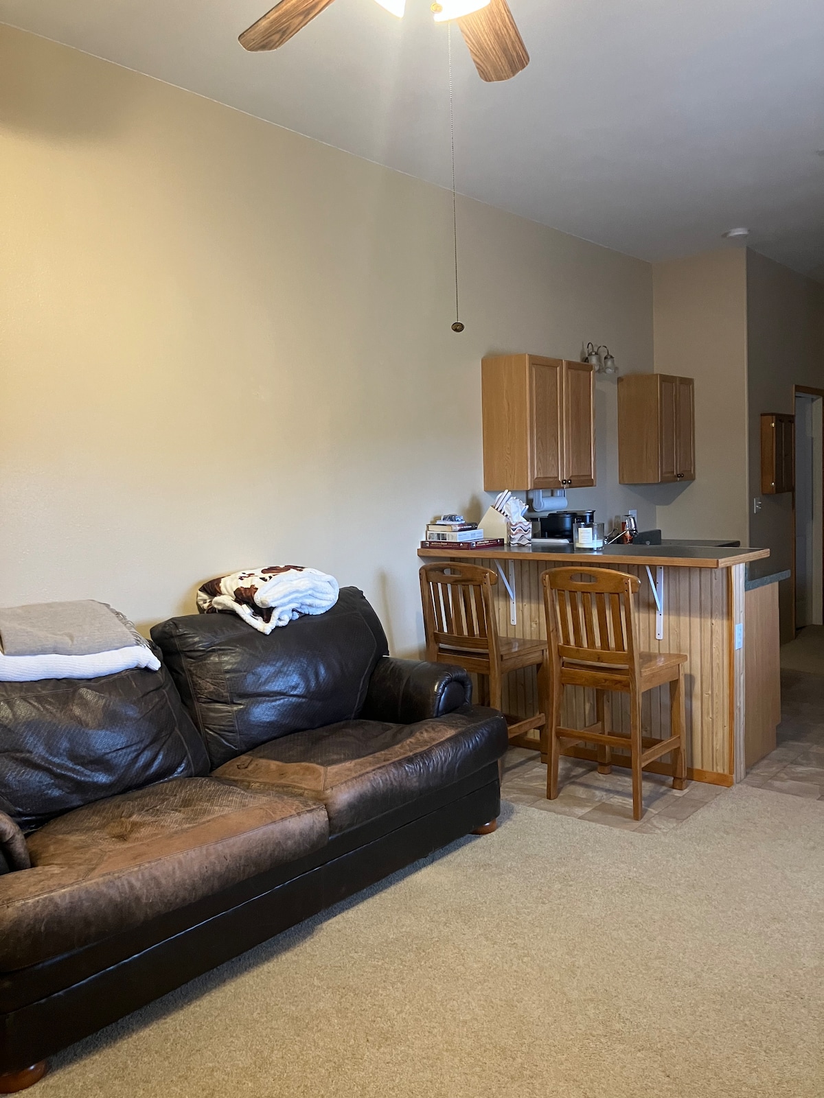We have changed our listing to month or longer stays and encourage people to advantage of the good rates this allows. Father Sheehan Park is close for creek side “socially distant” walks. Other changes: living room sofa no longer a bed, 2 twin beds in loft, Solo fire pit, removed play set. Open plan, no door on bedroom. Located in a quiet neighborhood yet within a half-mile of shopping, and one block away from a park and trails along Blacktail Creek. Looking forward to your stay!