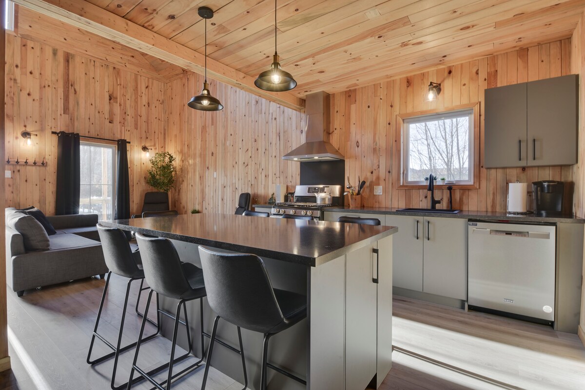 Le Panörama is a mini-house surrounded by nature located in the mountains at Lac Beauport (Domaine Maelström). Warm, comfortable and well thought out, the chalet also offers beautiful sunrises and an equally splendid view. There are mountain biking, fatbike & snowshoeing trails all over the mountain with direct access from the chalet and the Sentiers du Moulin outdoor center is nearby. Come and experience nature in this unique place and get away from everyday life!