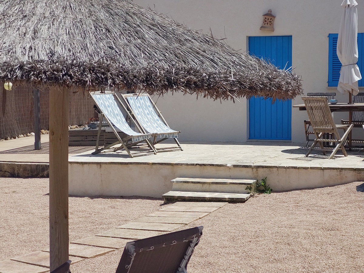 Cala Serena, Cala d'Or region South-East of the island, accommodation in a haven of peace between land, sky and sea 50 minutes from Palma airport. Charming typical "Ibiza" style house with sea view 5 minutes walk from a beach, in a private urbanization on a cliff at the water's edge. The house consists of a living room, a small kitchen, 2 bedrooms and 2 bathrooms. The upstairs bedroom is on a mezzanine and has a relaxation area. There are 3 terraces and free parking