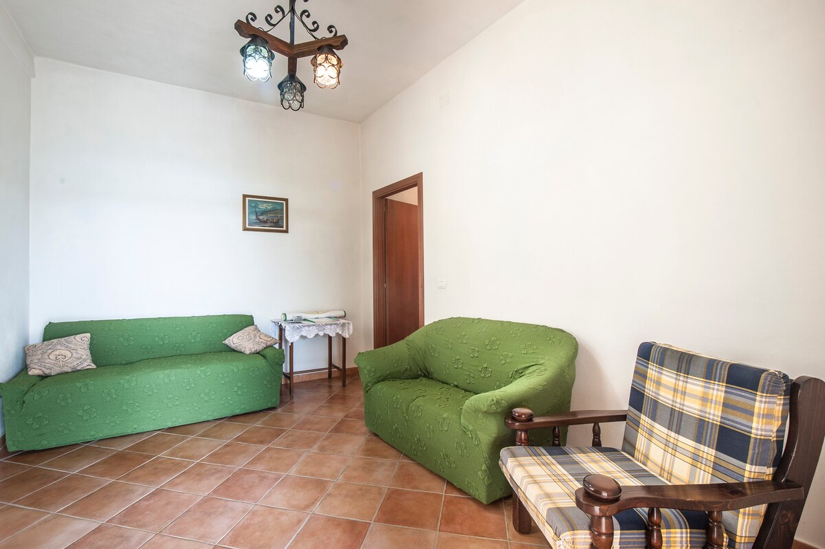 The house is spread across two levels, a double bedroom, with a half bathroom, and a large panoramic terrace,furnished, equipped with a second outdoor kitchen On the lower floor: an equipped kitchen, a bathroom with shower, a second double bedroom and a living room with single beds, the house is surrounded by a garden. It is also equipped with Wi-Fi and ceiling fans. Air conditioning in bedrooms can be used with a surcharge of 5 euros per day per room if used.