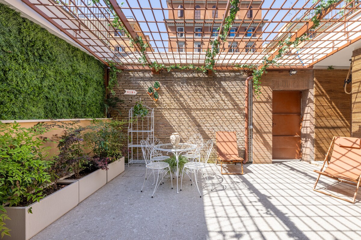 This modern apartment, located in the heart of Rome at the foot of the Aventine Hill in the Testaccio district, features a spacious garden with plants and marble sculptures from the Roman period. It is a newly built property, fully furnished with all modern amenities, perfect for those seeking a peaceful and beautiful spot, while still being close to the city's main attractions.