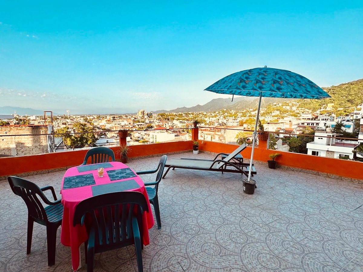 The spacious, peaceful hill-top apartment is in the Cinco de Diciembre neighborhood. A short distance away, find shopping, dining options, and the start of the Malecon (Boardwalk). The casita is a section of a larger residence with a private entrance and secure gates. Enjoy a lovely view of the pool, to enjoy throughout your visit. A compact kitchen for preparing simple meals; there are many outstanding restaurants to discover! Conveniently located and a tranquil retreat after exploring PV!