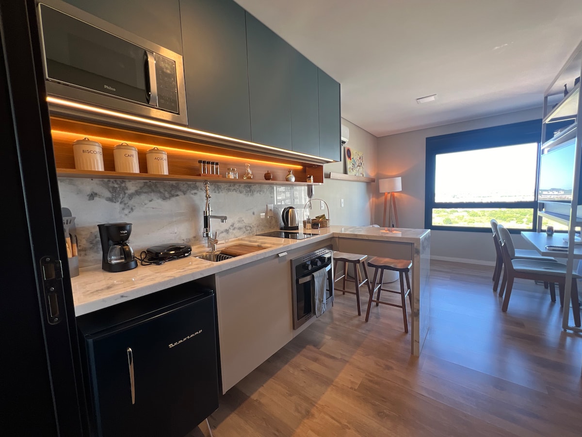 Prédio INN, um encontro de parque e alma, permite ao hóspede desfrutar de todo o conforto e segurança do Parque Una, e ter uma maior conexão com a natureza! O ROOFTOP (área comum do prédio INN) fica (porta a porta) com o nosso loft, proporcionando ao hóspede não apenas inesquecíveis momentos de lazer, como também acaba tornando-se uma extensão da apartamento! O apartamento tem uma vista deslumbrante da mesa da sala de jantar.