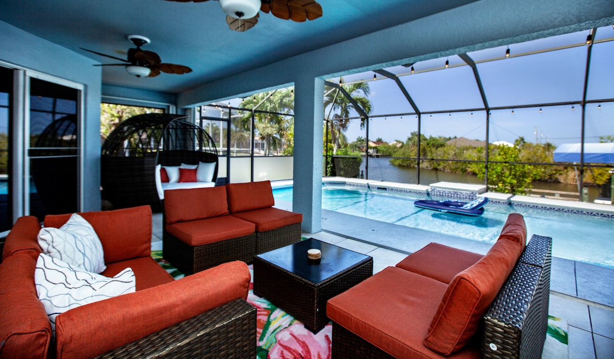 Start your day with breathtaking views of Seabreeze Lake and the Cape Coral Canals, just steps from your private oasis. 🏡✨ Grill up something delicious and dine outdoors with multiple lounge areas that make every evening unforgettable. We’ve got the whole family covered with games, toys, a pack-and-play, highchair, and stroller. You’ll find beach chairs & toys ready for your beach adventure. Picture yourself savoring the sunrise and unwinding under the vibrant evening skies.