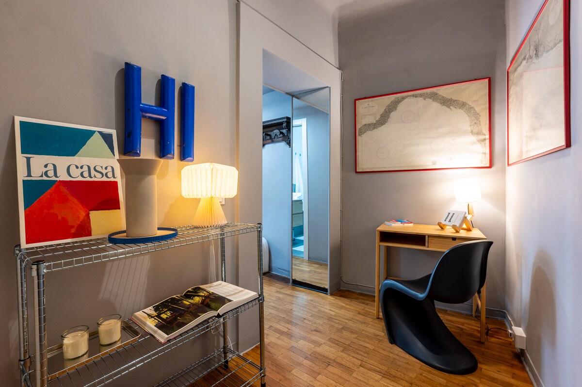The furniture is new, there is a small but well-equipped kitchen. The double wall bed is standard size and is very comfortable. The living room has a work space with a desk. In the bathroom, guests who need it can also use a washing machine. High-speed Wi-fi with fiber optics. The apartment overlooks a busy central street in Genoa, but the apartment is equipped with new anti-noise windows. Our guests will also find earplugs in the gift kit.