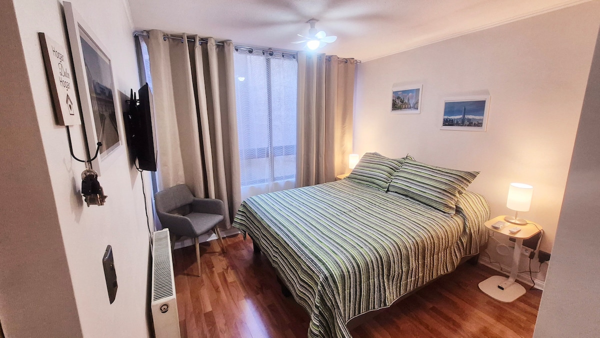 ** Excellent starting point to explore the city** A quiet and safe sector, steps from exclusive hotels and the most attractive points of the sector such as Plaza de Armas, Cerro Santa Lucia, Lastarria, shopping and all the must-see tourist attractions of the old town. It has a 24-hour guard in access control. Self check-in/out. Fully equipped to enjoy a wonderful experience in Santiago.