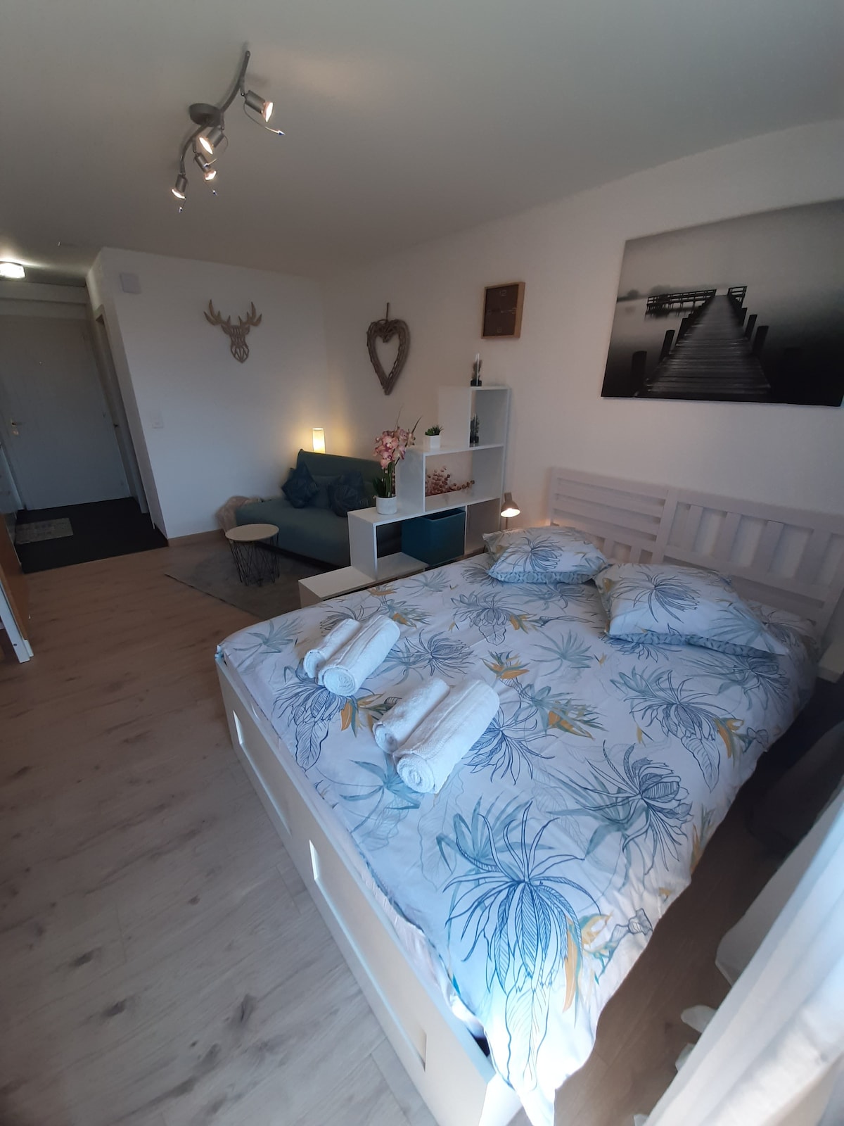 Our little cocoon is located in Montana-Village 5min from Crans-Montana and 15min from Sierre. Nearby bus stop and parking space available. The studio was built in 2021. Bed size 200 x 200 cm. Bathroom with shower, an outdoor area to have breakfast, equipped kitchen. From the studio there are walking or cycling tours possible. No smoking and no parties allowed For hygiene reasons, we do not accept pets.