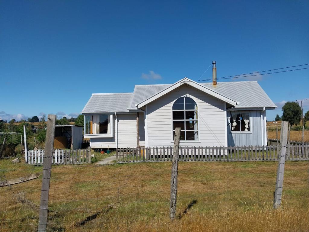 Beautiful cabin in the middle of rural Chiloé. The cabin is located specifically in Teguel Bajo, a small community 4.5 km from the city of Dalcahue. It is a place in the middle of the countryside, surrounded by native forests, a few meters from the Teguel Wetland and with a beautiful view of the Dalcahue canal. On the first floor there is a large space where the kitchen, living room, dining room and hot tub are located. The main bedroom with a double bed is in the loft.