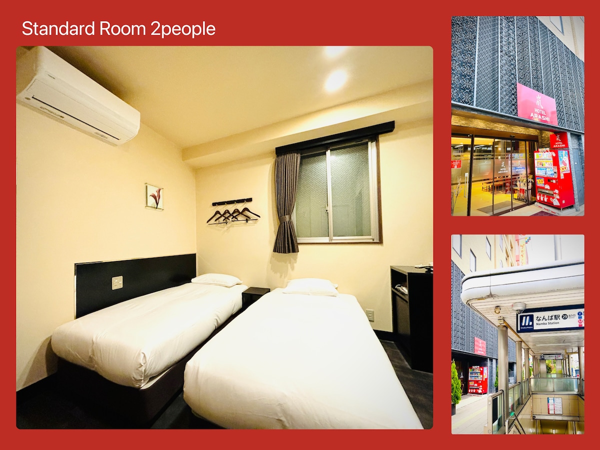 4-1【距难波站28号出口仅1米 】2人标准间|关西机场直达|心斋桥・日本桥・道顿堀徒步圈内|中文可