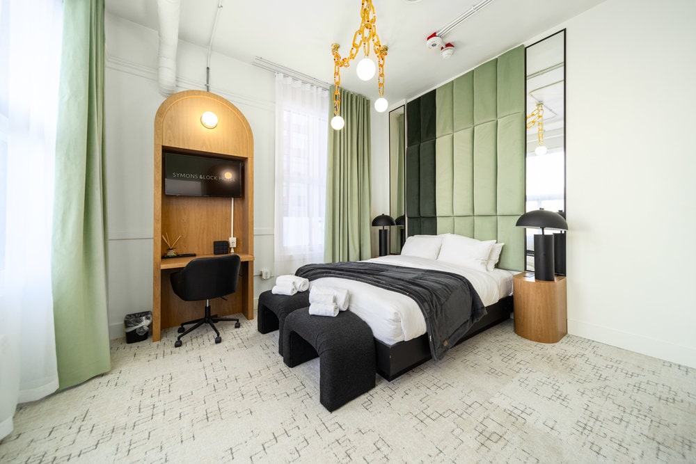 Welcome to the Symons Block Hotel, a boutique stay in the heart of downtown Spokane. Rest in a cozy, European-style room featuring soft linens, plush Turkish cotton robes, and murals by local artist Moneta Lyons. Please note: your private bathroom is located just across the hall for your exclusive use. Enjoy guest discounts at nearby favorites like People’s Waffle, Cochinito, and Indaba Coffee- steps from Spokane’s best dining and art. Check-in: 4 PM Checkout: 10 AM