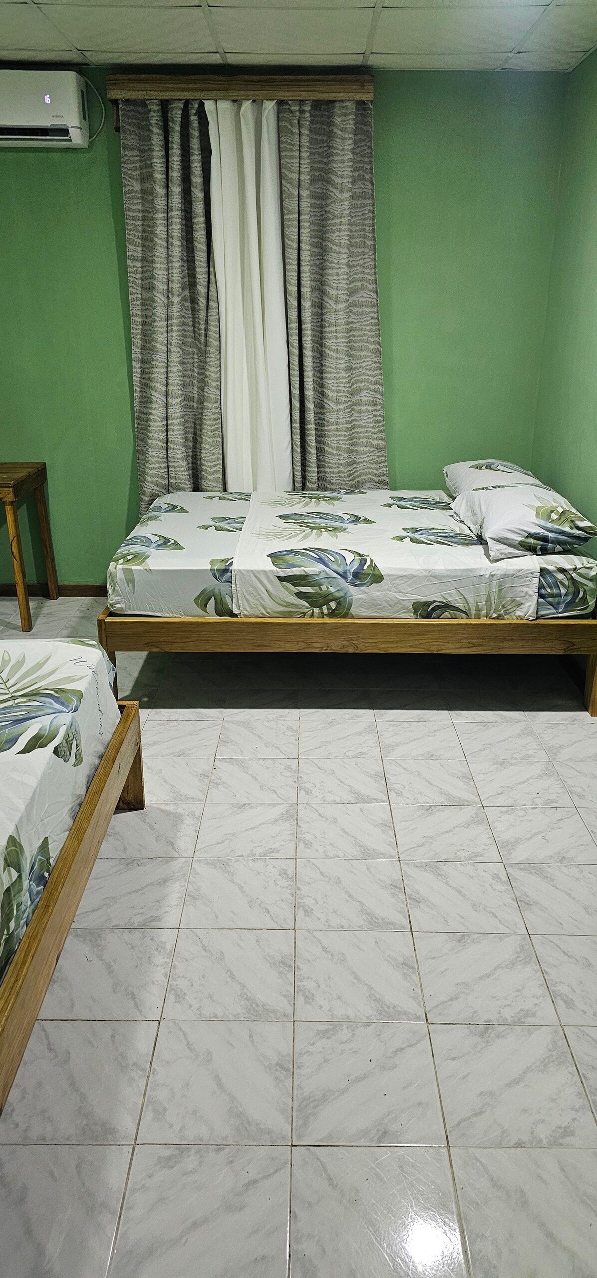 Our hotel's quadruple room in the heart of the island is the perfect retreat for families or groups of friends looking for comfort and style. The room offers 2 double beds, A/C, private bathroom with hot water, large windows that you definitely enjoy. Located in a prime area, you'll be just steps away from various activities, services, and local tours that allow you to explore everything the island has to offer. Your experience on the island starts here!