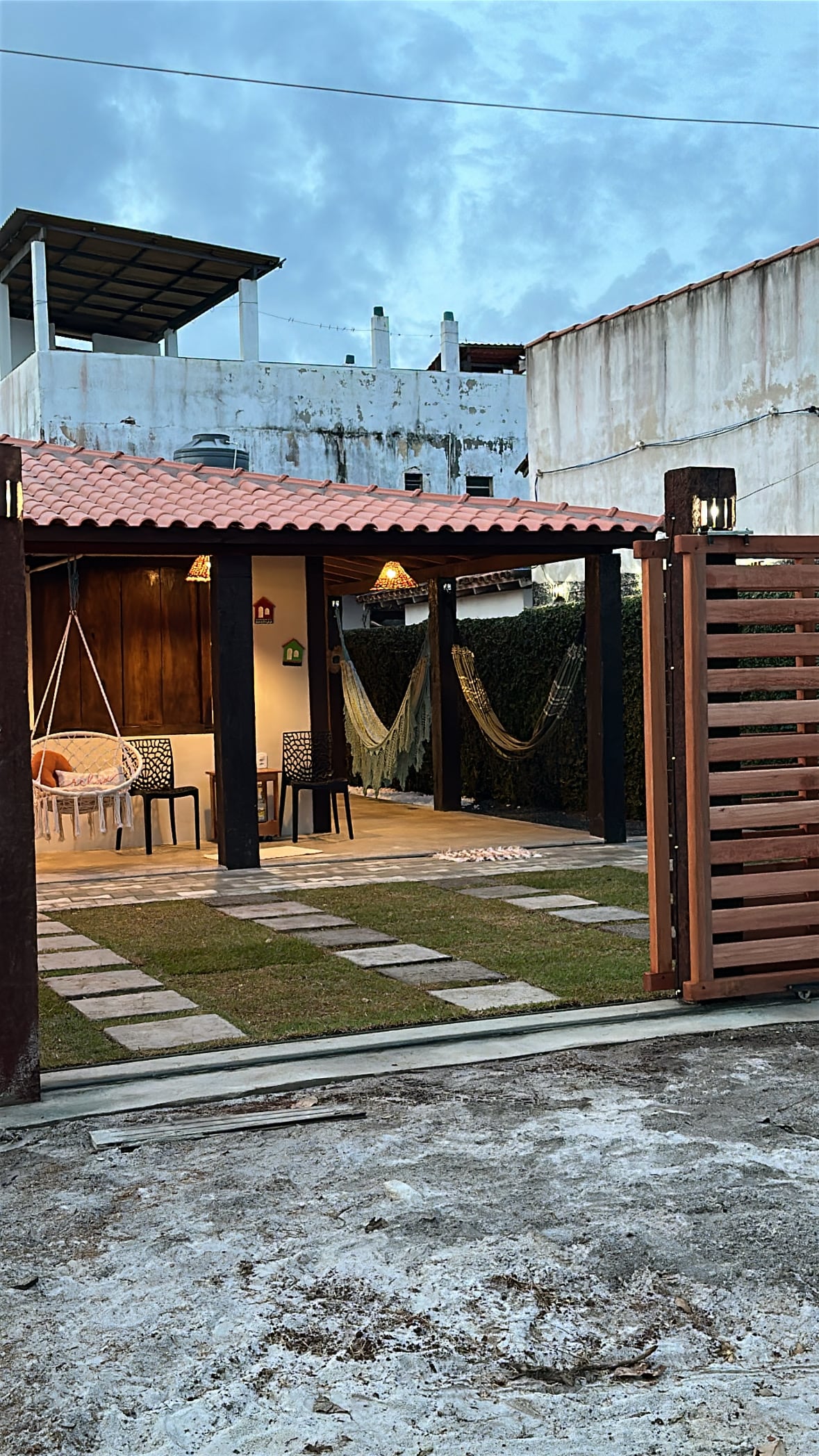 Simple chalet in harmony with the Village and built with affection to receive up to 6 people. There are 2 floors: 2 bedrooms with balcony, upstairs. And downstairs; bathroom, kitchen and a room that accommodates 2 more people. Located in a quiet street, 3 blocks from the church square, 70m from the river and about 400m from the dunes that give access to the beach. With WiFi. SPECIAL ⚠️RATE at the ⚠️ FESTIVAL Cobamos package (fixed value + tx), regardless of the number of guests, being 6 the maximum.