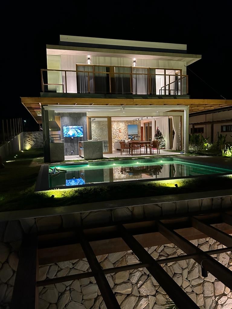 Beautiful house in the Ponta de Inhambupe Condominium, ideal for up to 9 guests. There are 3 air-conditioned bedrooms (2 suites and 1 with a trundle bed) and a living room with a king-size sofa bed and air-conditioning. The large balcony with a hammock is a highlight, as well as the gourmet space, which is perfect for gathering family and friends. The house is fully equipped: full kitchen, bed and bath linens, ensuring comfort, leisure and practicality.