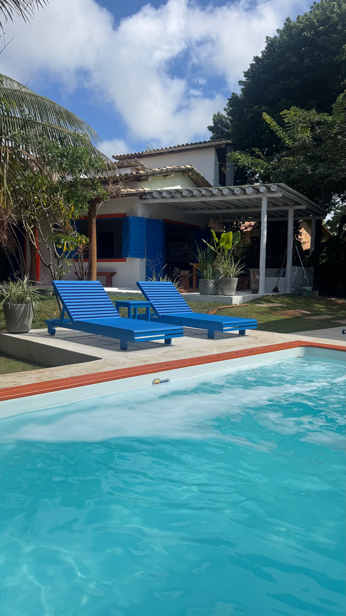 Rustic and comfortable decor. The house has a swimming pool, is well ventilated and bucolic. It has air-conditioning in the master bedroom, hammocks on the balconies and in the living room, a lawn, a shower in the garden, a barbecue grill, and the property is completely fenced in, so you can bring your pet. It is a privileged location because of the silence and tranquility... for those who seek peace, tranquility and appreciation of nature. The house is on a corner and is located in the village, in the best area of Massarandupió, where the grocery stores, restaurants and bakery are located.